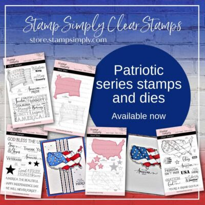 Hello, and Welcome! Here today with a tribute to the red, white, and blue courtesy of Stamp Simply's brand new stamp and die sets: "The Red, White, and Blue" clear stamps and "The Red, White, and Blue Flag" steel die. So great to color and create with for any patriotic holiday or event! You can purchase these as a bundle, or individually.